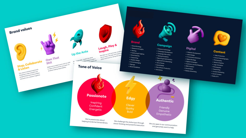 They’re the weird bit of friction inside a glossy and polished brand system.